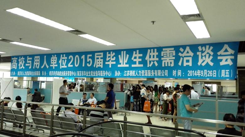 2014年9月26日,由南京市人力资源和社会保障局举办的“高校与用人单位2015届毕业生供需对接会”在南京市人才大厦举行。我院招就处就业办和二级学院代表应邀参加了此次对接会,向用人单位广泛推介我院2015届毕业生。