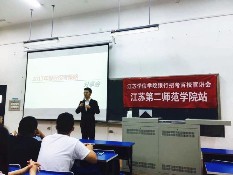 为贯彻落实教育部、省教育厅毕业生就业工作文件精神,提升我校学生就业竞争力,提高就业质量,招就处邀请了学信学院的银行招考专家于2016年6月2日下午在我校浦口校区129教室举办了“银行招考策略讲座”。